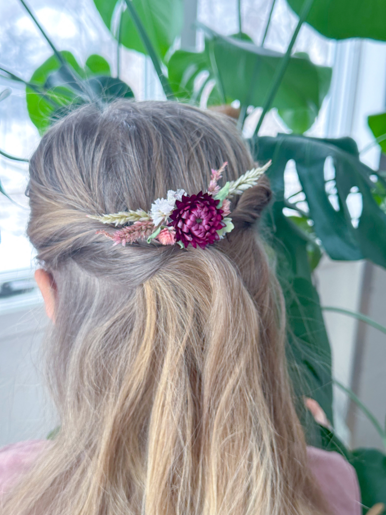 Everlasting flowers are often referred to flowers that dry easily and keep their shape and colors during the drying process. At French Rooted we take pride in growing and drying these specific types of flowers and are studio is filled with strawflowers, statice, gomphrena, and celosia. We also utilize a preservation method that enables your flowers to be more resistant.